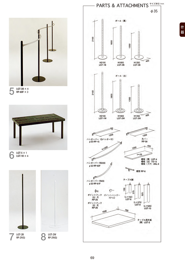 ローザの什器レンタル。「LOG2(ログ2)」は黒と白の2種類の色からお選びいただけるシンプルで使いやすい定番のポール什器です。